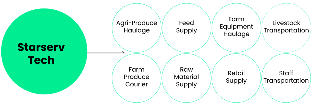 Starserv-Tech bridges the gap between farmers/agri-businesses and their customers. It is a logistics technology used by farmers/agri-businesses to get their agri-produce/products to their customers/endusers